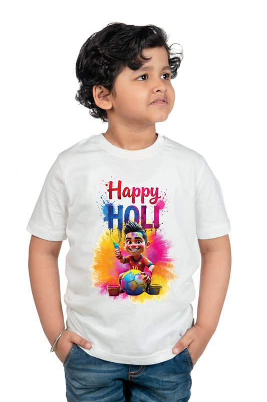 Chombooka Boys & Girls' Colorful Polyester Holi Printed T-Shirt | Festive Fun for Kids | Happy Holi Football theme Printed Tee