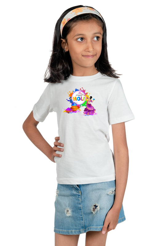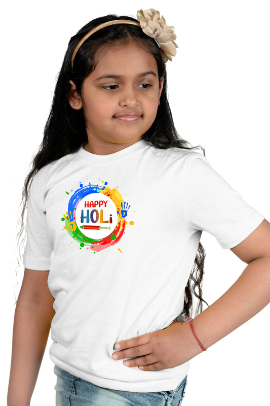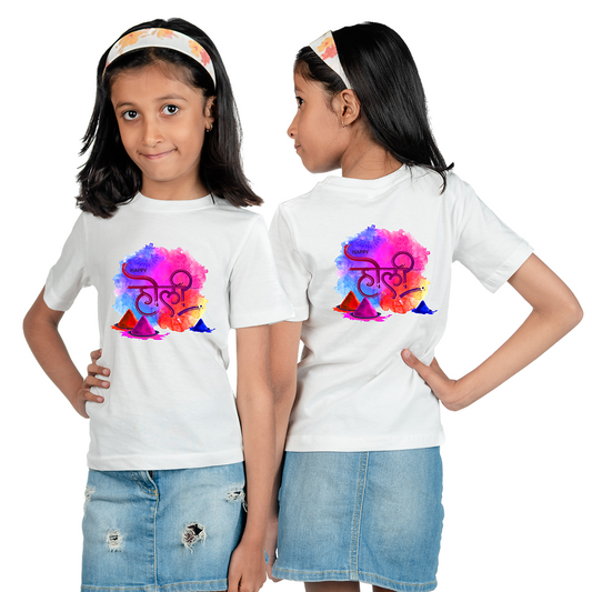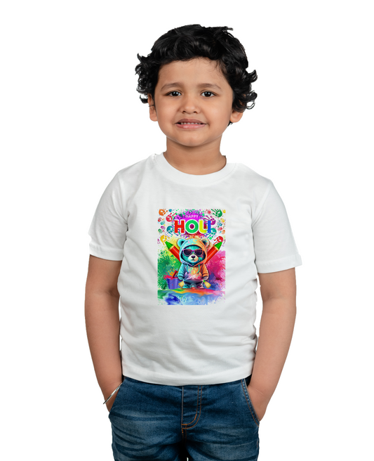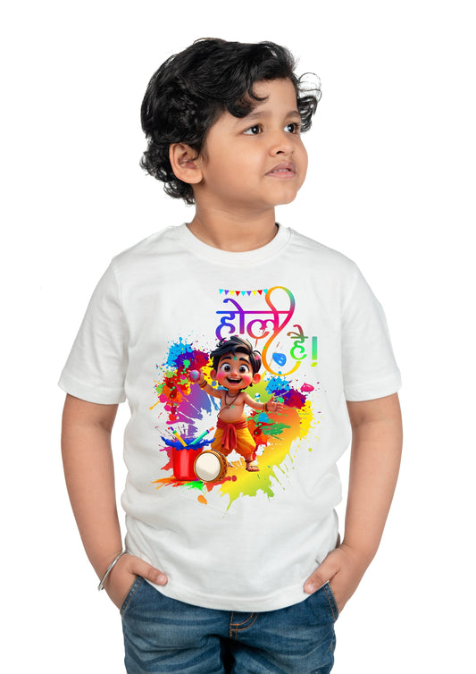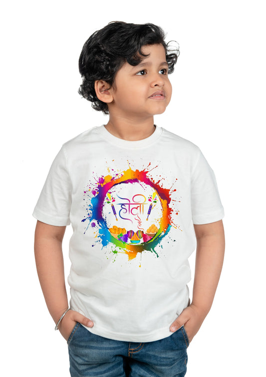 Chombooka Boys & Girls' Colorful Polyester Holi Printed T-Shirt | Festive Fun for Kids | Happy Holi Hindi Design Theme