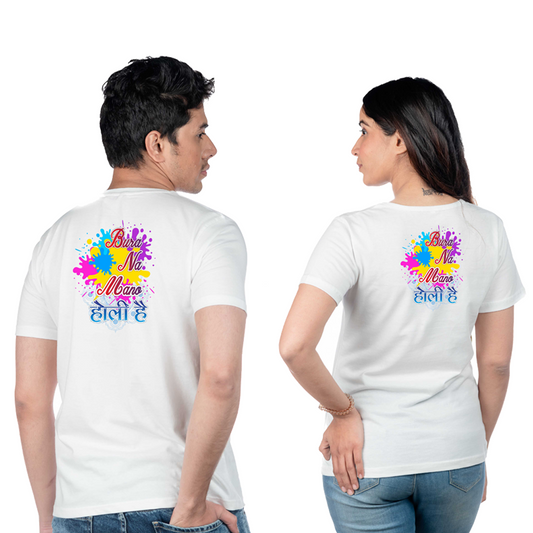 Chombooka Colorful Couple Polyester Holi Printed T-Shirts: Celebrate Together in Style | Bura Na Mano Holi Hai (Pack Of 2)