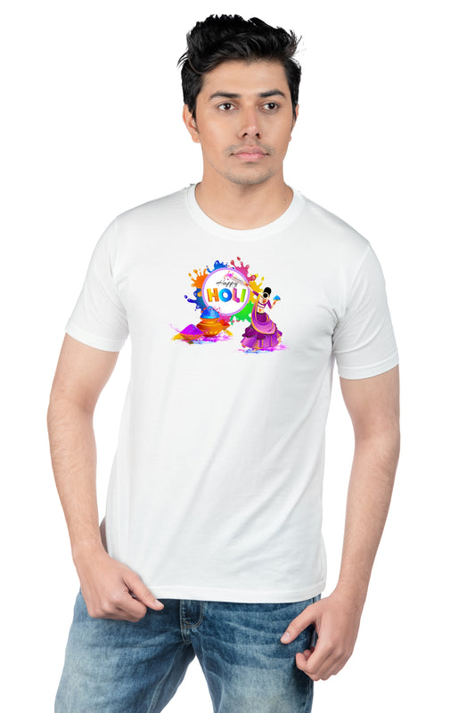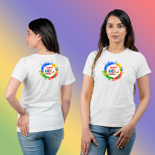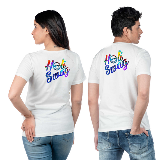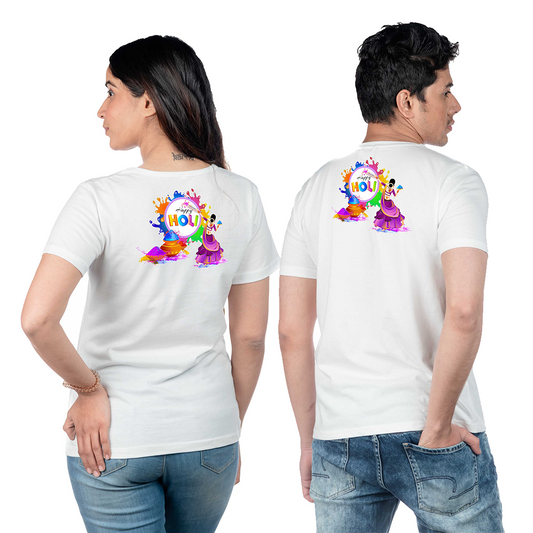 Chombooka Colorful Couple Polyester Holi Printed T-Shirts: Celebrate Together in Style | Holi Swag (Pack Of 2)