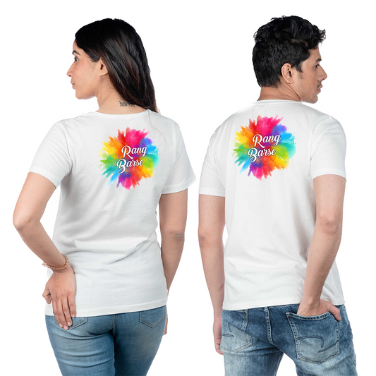 Chombooka Colorful Couple Polyester Holi Printed T-Shirts: Celebrate Together in Style | Rang Barse (Pack Of 2)