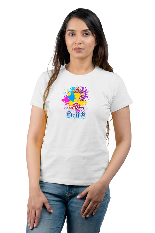 Chombooka Colorful Mom-Daughter Polyester Holi Printed T-Shirts | Celebrate Together in Style | Bura Na Mano Holi Hai (Pack Of 2)