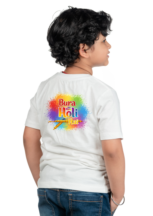 Chombooka Bura Na Mano Holi Hai Boys & Girls Colorful Holi Printed T-Shirt | Festive Fun for Kids