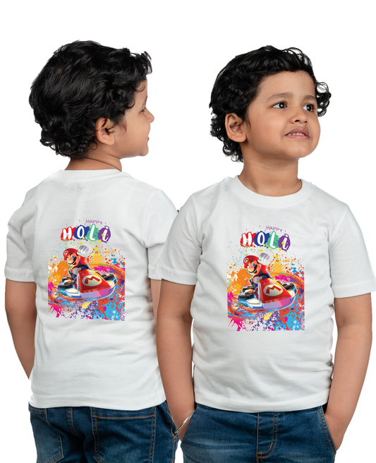 Chombooka Boys' Colorful Polyester Holi Printed T-Shirt | Festive Fun for Kids | Happy Holi Mario