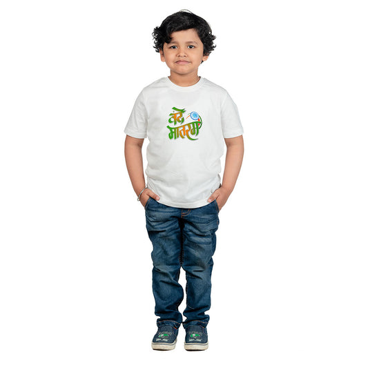 Chombooka Kids Polyester T-shirt | Vande Mataram Graphic | Dry-Fit Independence Day Tee for Boys & Girls | Half Sleeve Patriotic Wear