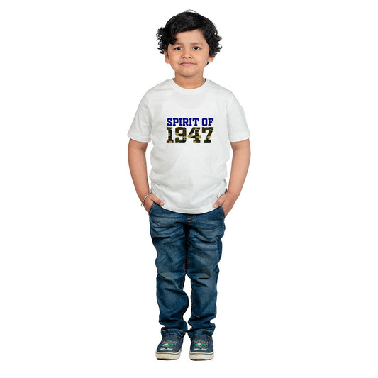 Chombooka Kids T-shirt | Spirit of 1947 Graphic Print | Polyester Fabric | White Half Sleeve Tee for Boys & Girls | Casual & Comfortable