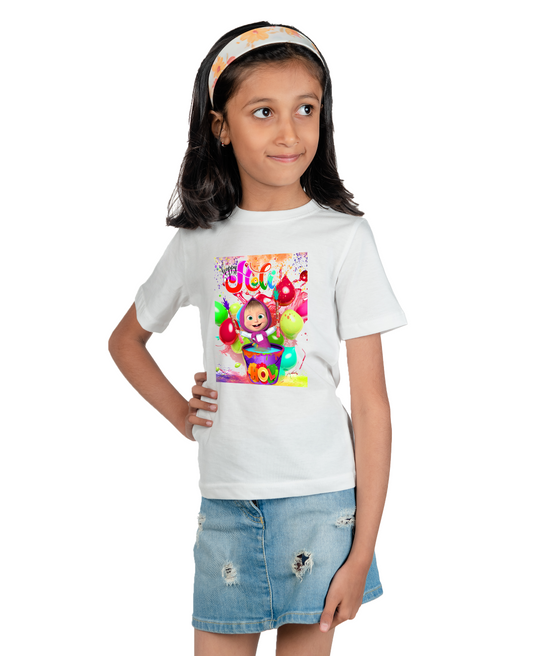 Chombooka Girls' Colorful Polyester Holi Printed T-Shirt | Festive Fun for Kids | Happy Holi Doll