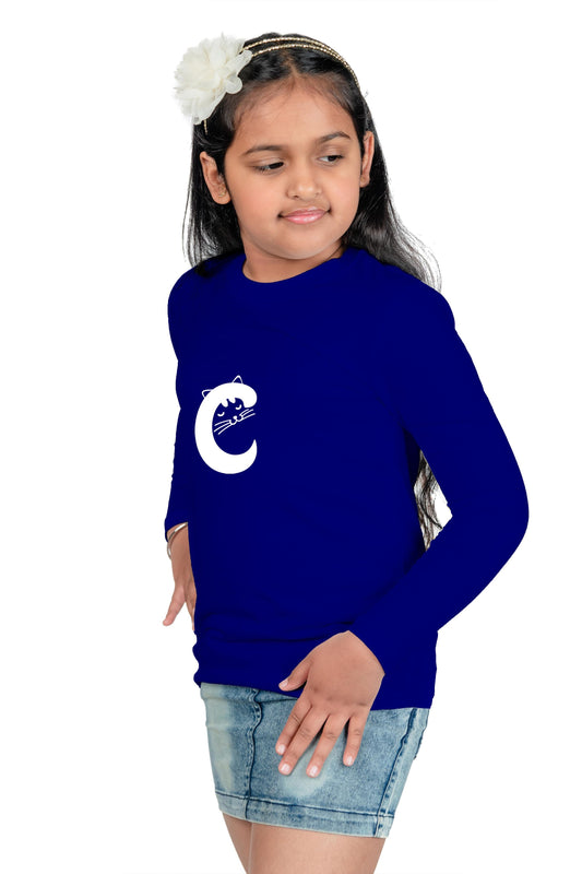 Chombooka C Cat Full Sleeves Girls Cotton T-Shirt