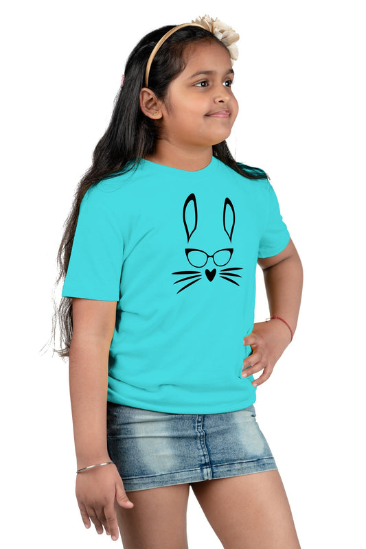 Chombooka Easter Bunny Face Half Sleeves Girls T-Shirts