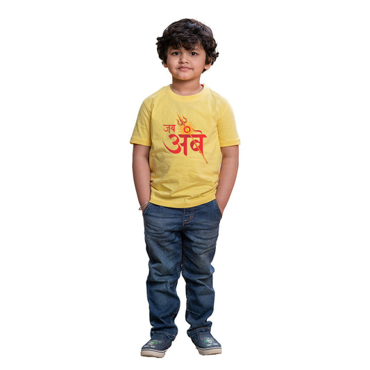 Kids Jai Ambey Printed T-Shirt – Hindu Devotional Graphic Tee | Pure Cotton Spiritual T-Shirt forBoys & Girls | Durga MATA Design