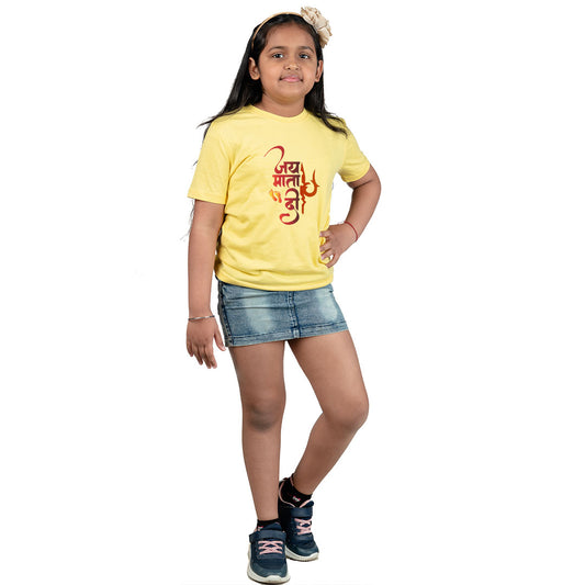 Kids Jai MATA Di Printed T-Shirt – Hindu Devotional Trishul Graphic Tee for Kids | Cotton Navratri Festival T-Shirt