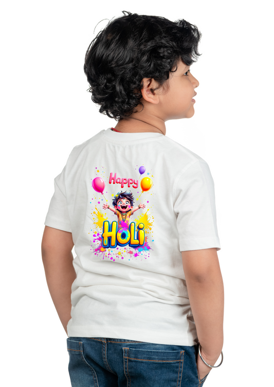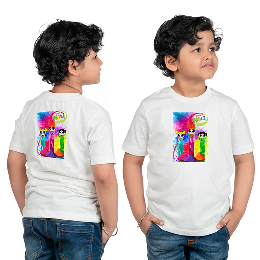 Chombooka Boys & Girls' Colorful Polyester Holi Printed T-Shirt | Festive Fun for Kids | Happy Holi Cartoon theme Printed Tee