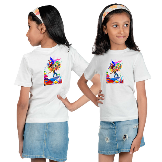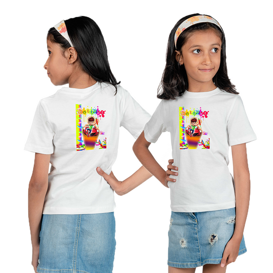 Chombooka Kids' Holi Festival Polyester T-Shirt | Splash into the Celebration | Powerful Girls Design