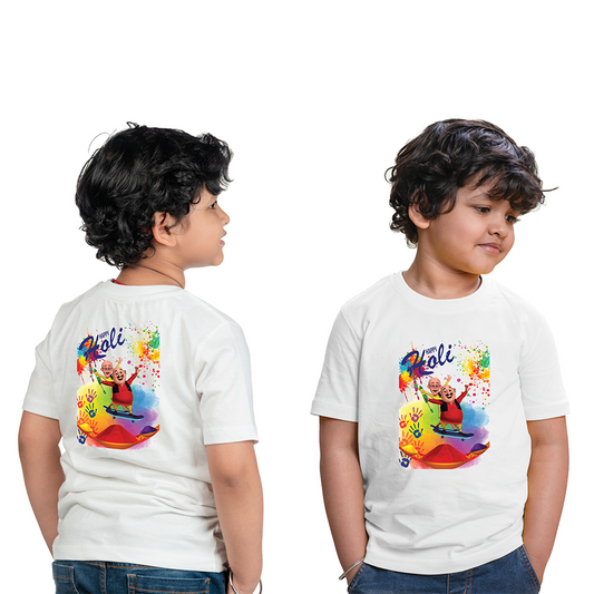 Chombooka Kids' Holi Festival Polyester T-Shirt | Splash into the Celebration | Motu Patlu Design