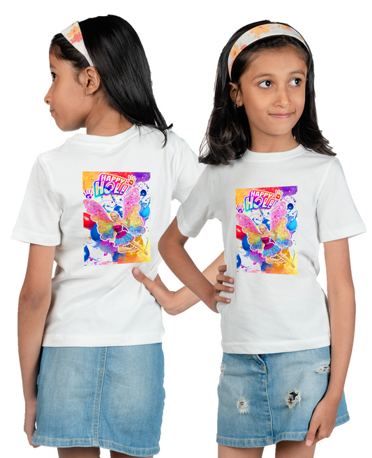 Chombooka Girls' Colorful Polyester Holi Printed T-Shirt | Festive Fun for Kids | Happy Holi Fairy