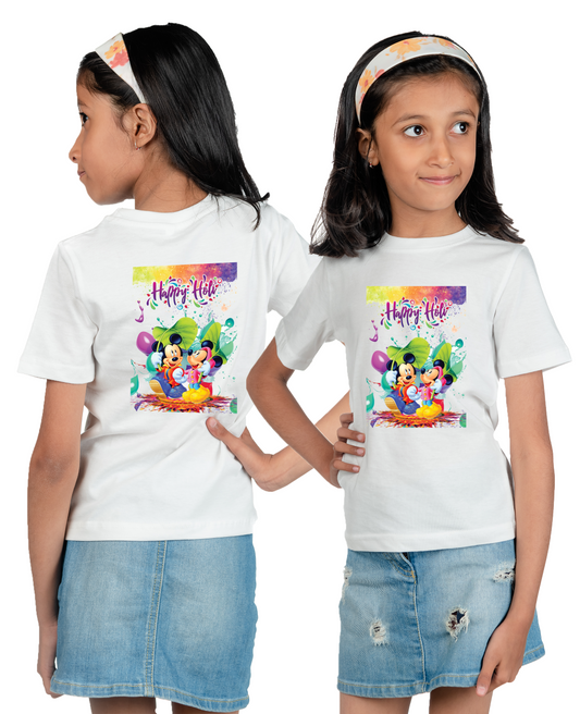 Chombooka Kids' Colorful Polyester Holi Printed T-Shirt | Festive Fun for Kids | Mickey Mini Design