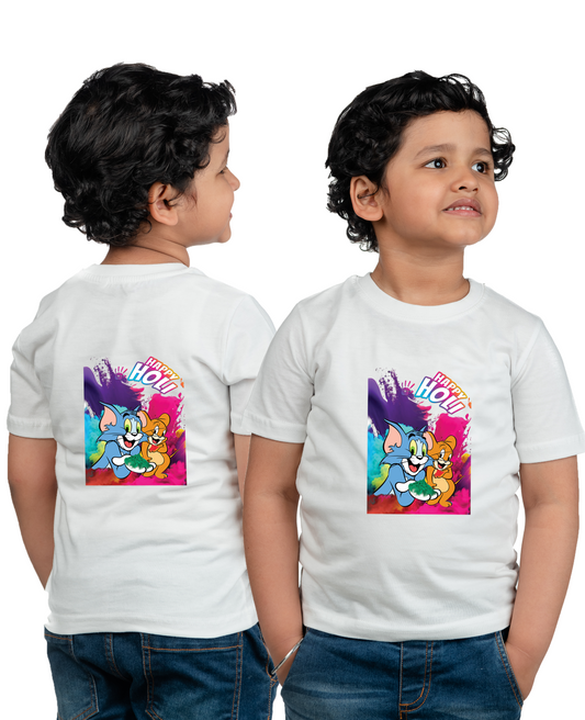 Chombooka Kids' Colorful Polyester Holi Printed T-Shirt | Festive Fun for Kids | Tom & Jerry Design