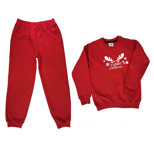 Kids Full Sleeves Warm Sweatshirts With Joggers Set | 100% Cotton Fleece | Kids Winter Wear | Christmas Deer V2 | For Boys And Girls