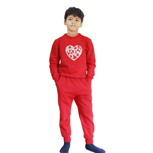 Kids Full Sleeves Warm Sweatshirts With Joggers Set | 100% Cotton Fleece | Kids Winter Wear | Christmas Heart | For Boys And Girls