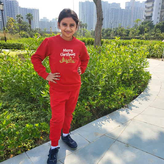 Kids Full Sleeves Warm Sweatshirts With Joggers Set | 100% Cotton Fleece | Kids Winter Wear | Christmas EVE | For Boys And Girls
